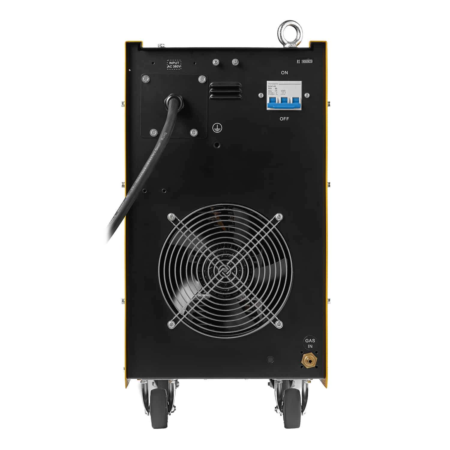 Перечисленные свойства агрегата дают возможность без ощутимых затруднений осуществлять фигурную резку. Присутствует удобная панель управления, оборудованная цифровой индикацией рабочих параметров. Для удобства транспортировки корпус аппарата оборудован поворотными колесами и транспортировочными рым-болтами.