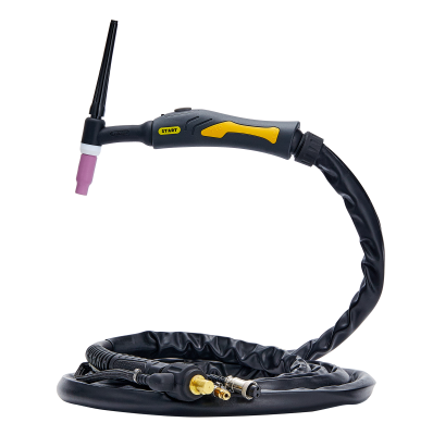 START TigLine-26 в исполнении ST26-8000 — это TIG-горелка с рукавом 8 метров, предназначенная для сварки на токах до 180 А. Модель выполнена в классическом стандарте WP-26 и подключается к большинству инверторов TIG-сварки с воздушным охлаждением.