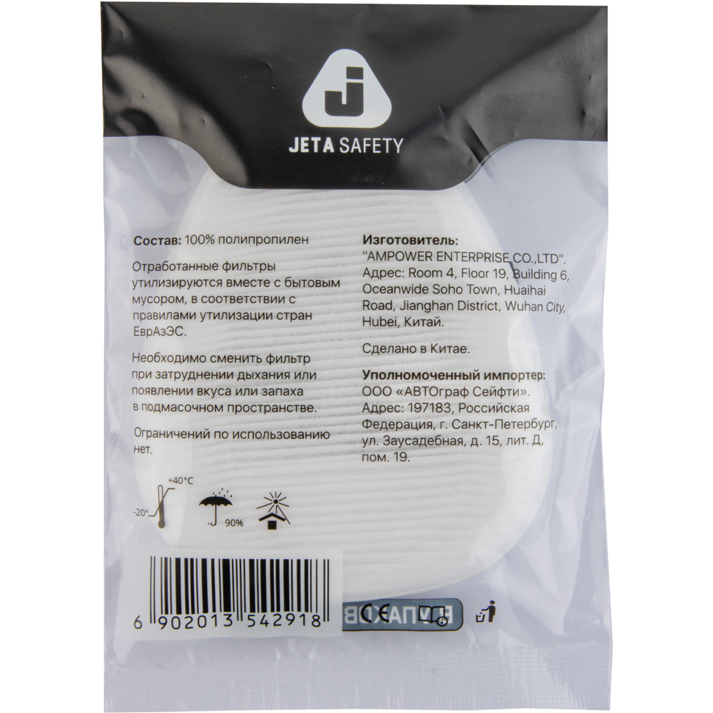 Комплект из двух фильтров позволяет своевременно производить замену и поддерживать высокий уровень безопасности при использовании совместимых респираторов и полумасок.