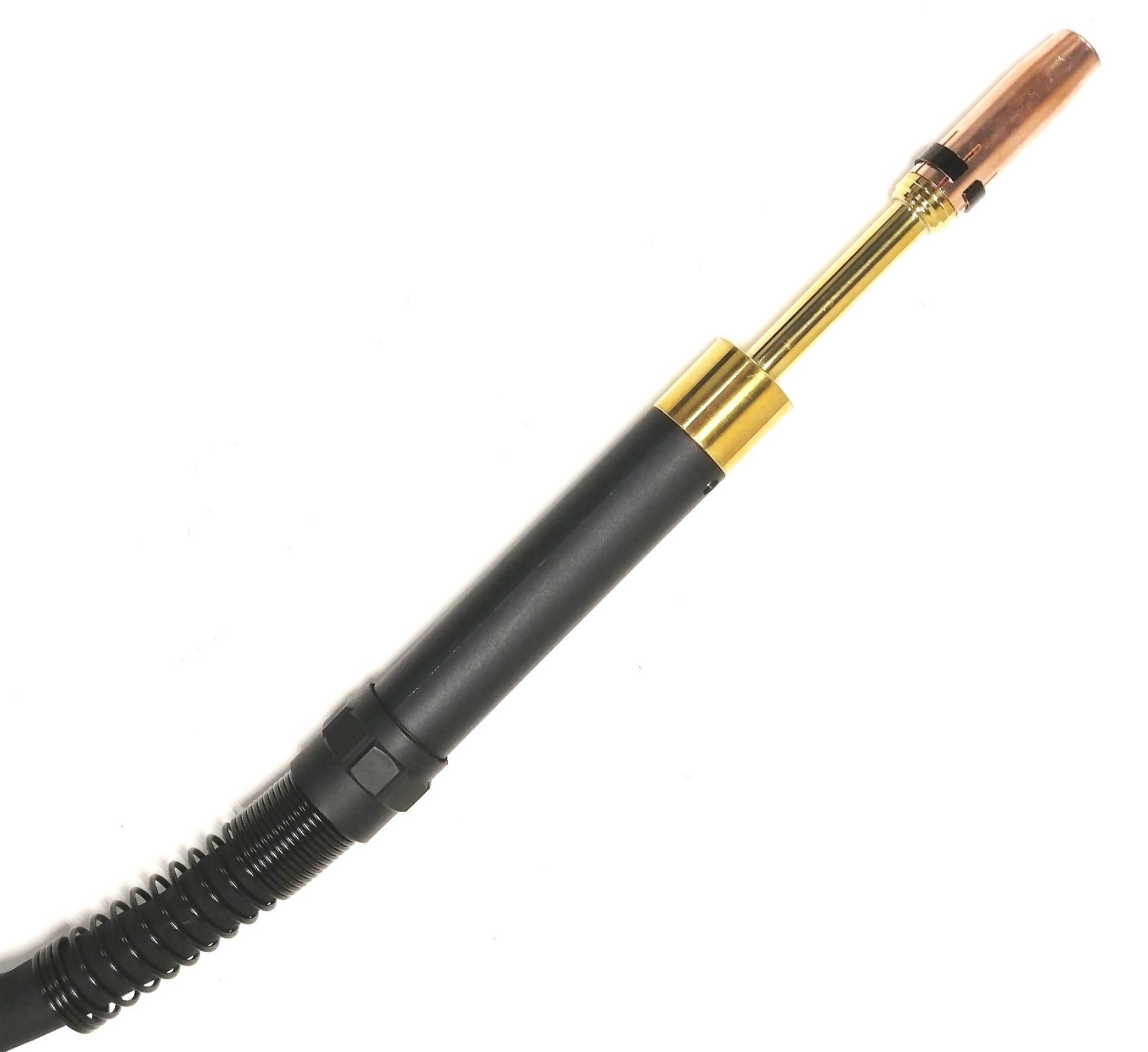 Модель оснащена прочным гусаком с углом изгиба 180°, что позволяет точно позиционировать зону сварки в труднодоступных местах. Шланг-пакет длиной 3 метра изготовлен с учётом требований к гибкости, стойкости к износу и стабильной подаче сварочной проволоки.