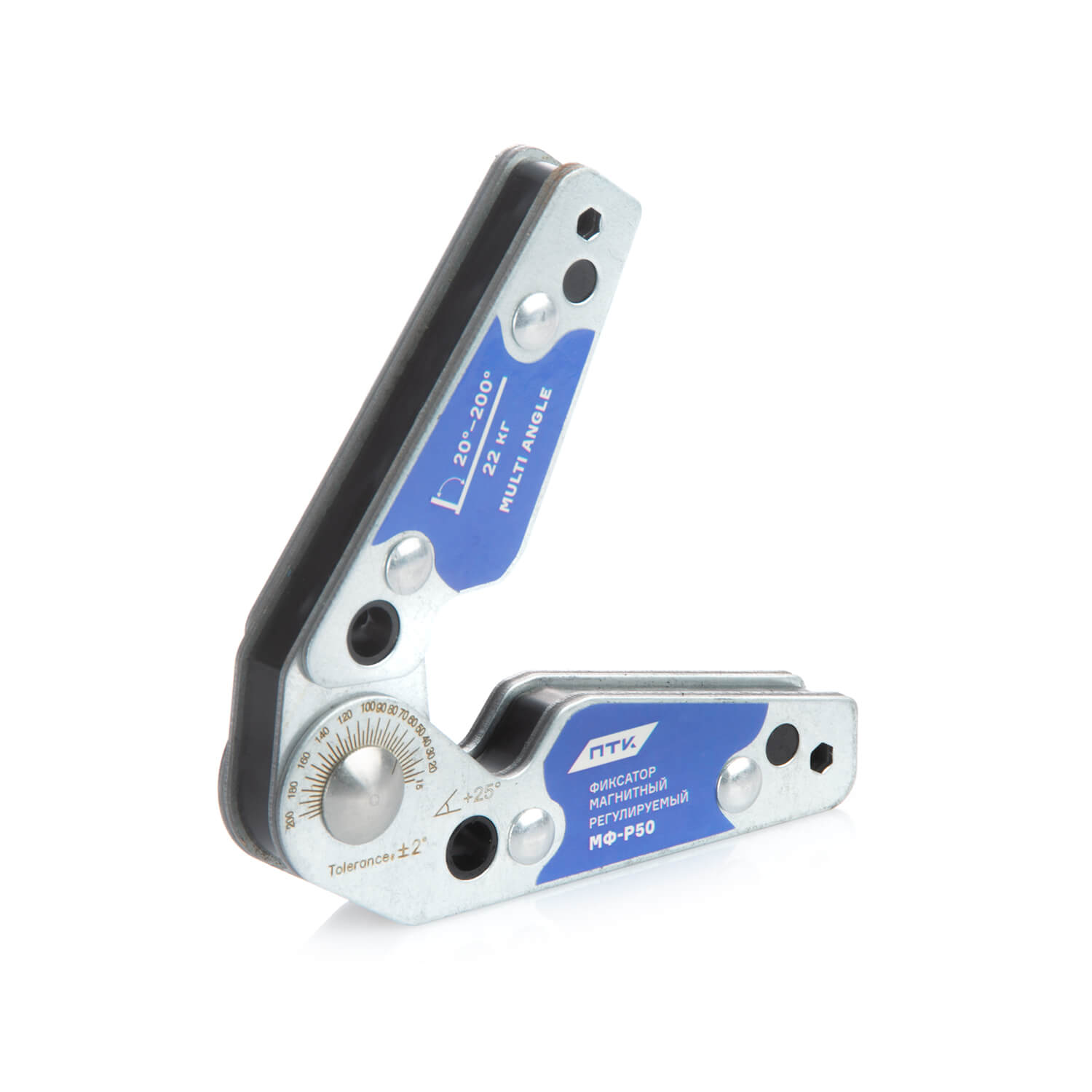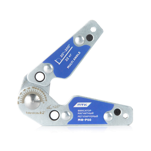 Фиксатор магнитный регулируемый МФ-Р50 — это универсальный магнитный уголок с возможностью настройки угла фиксации. Он предназначен для удержания металлических деталей под нестандартными углами при сварке, сборке, пайке и других работах, где требуется высокая точность позиционирования.