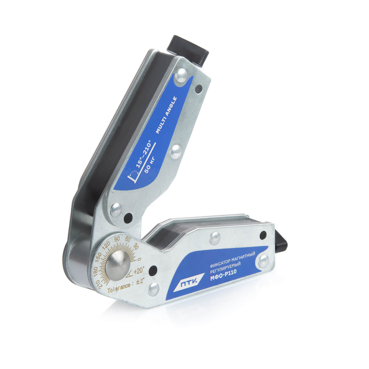 Фиксатор магнитный регулируемый МФО-Р110 — это профессиональный инструмент с функцией регулировки угла и возможностью включения/отключения магнитного поля. Он предназначен для фиксации металлических деталей под произвольным углом, что особенно важно при нестандартных сварочных, сборочных и слесарных работах.