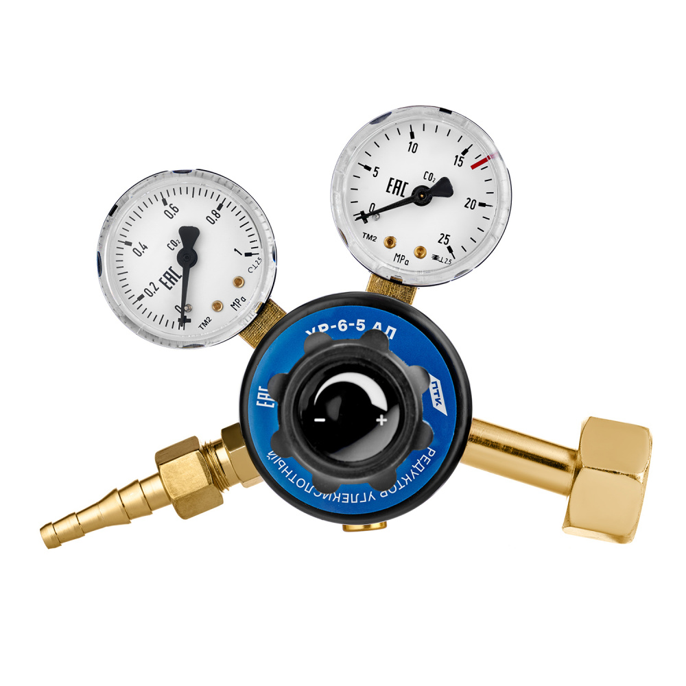 УР-6-5 АЛ — это лёгкий и надёжный редуктор для углекислого газа (CO2), выполненный в прочном алюминиевом корпусе. Он предназначен для регулирования давления газа из баллона и поддержания стабильного расхода при сварке, розливе напитков и других технологических процессах.