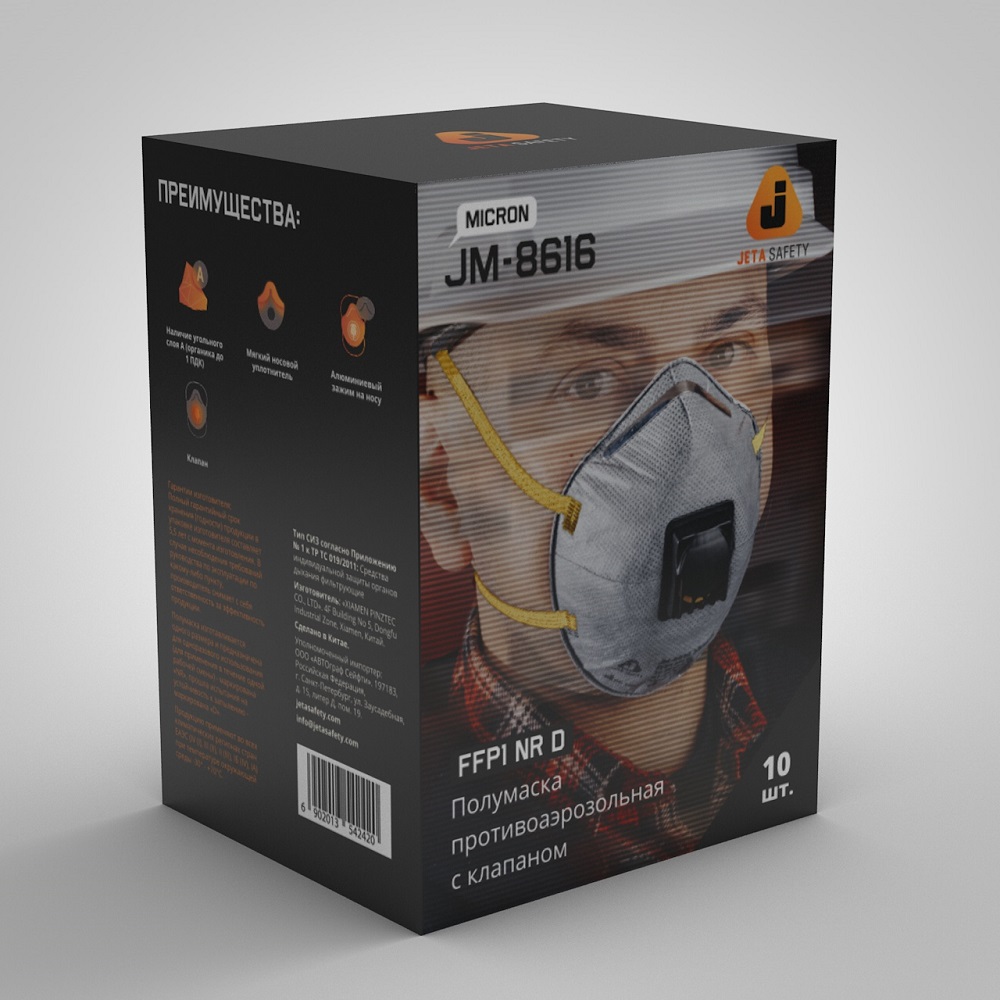 Чашеобразный респиратор с клапаном и угольным слоем (FFP1 NR D) 10 шт. JM-8616