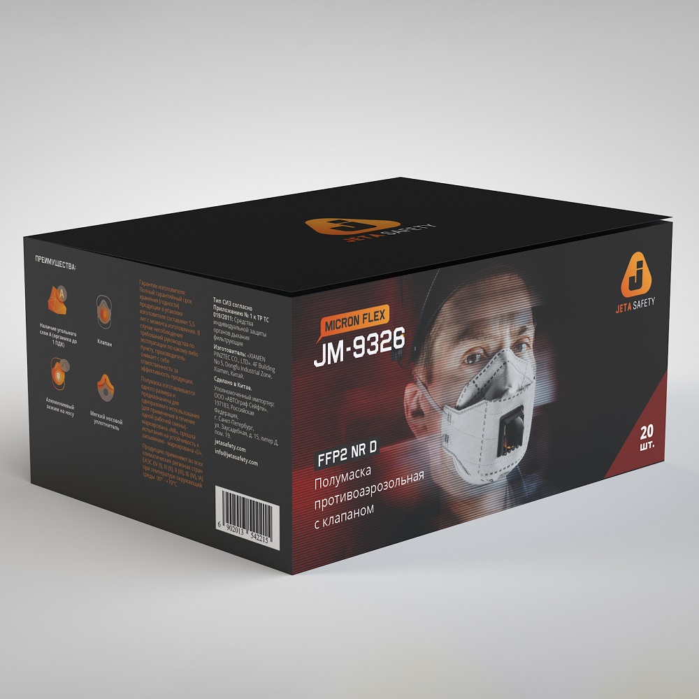 Трехпанельный респиратор с угольным слоем (FFP2 NR D) JM-9326