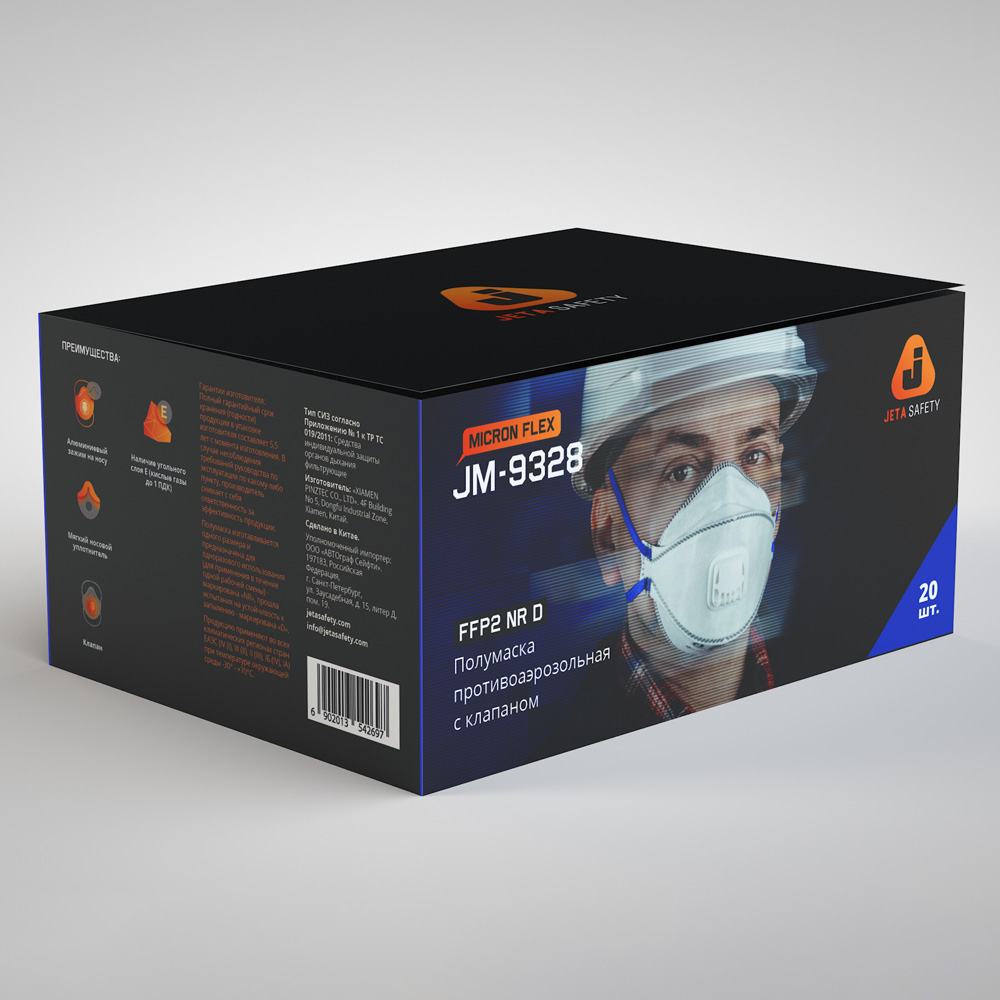 Трехпанельный респиратор с угольным слоем (FFP2 NR D) JM-9328
