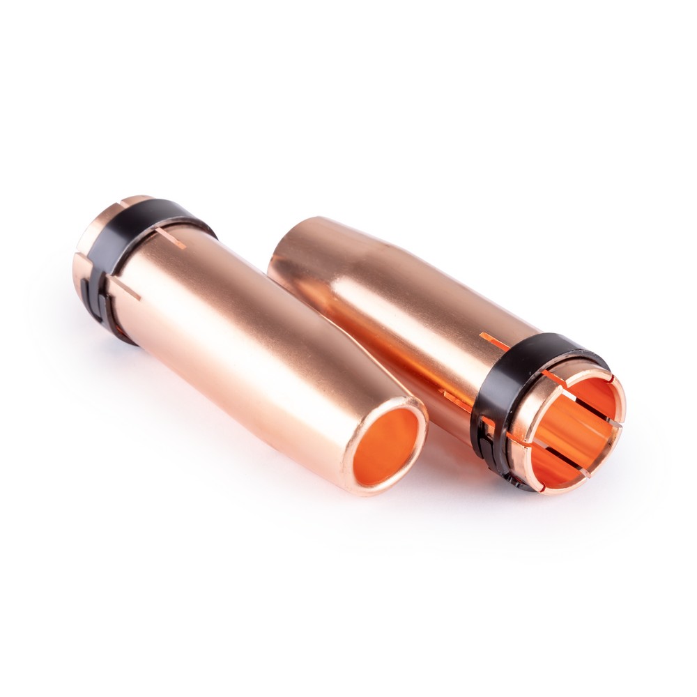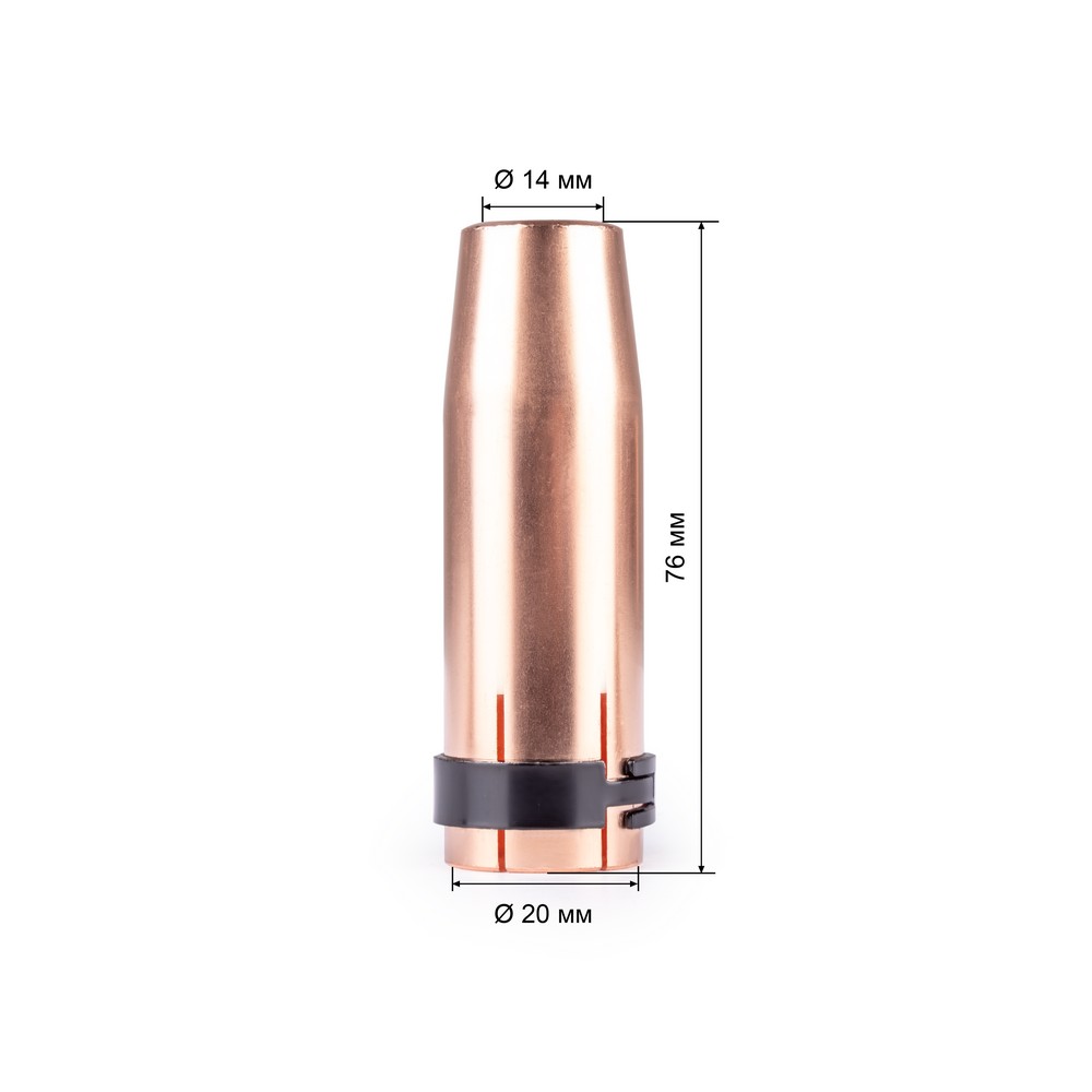 Это сопло обеспечивает стабильную газовую защиту, снижает разбрызгивание металла и повышает качество формирования шва. Диаметр: 14 мм.