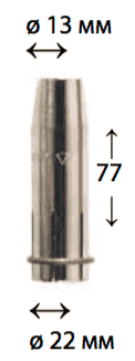 Сопло конической формы для газовых горелок полуавтоматического типа. За счёт изменения газового потока меняет интенсивность и внешний вид огненного факела. Защищает внутренние элементы горелки от механических повреждений и деформации во время производства сварочных работ. Отличается высокой прочностью и износостойкостью.