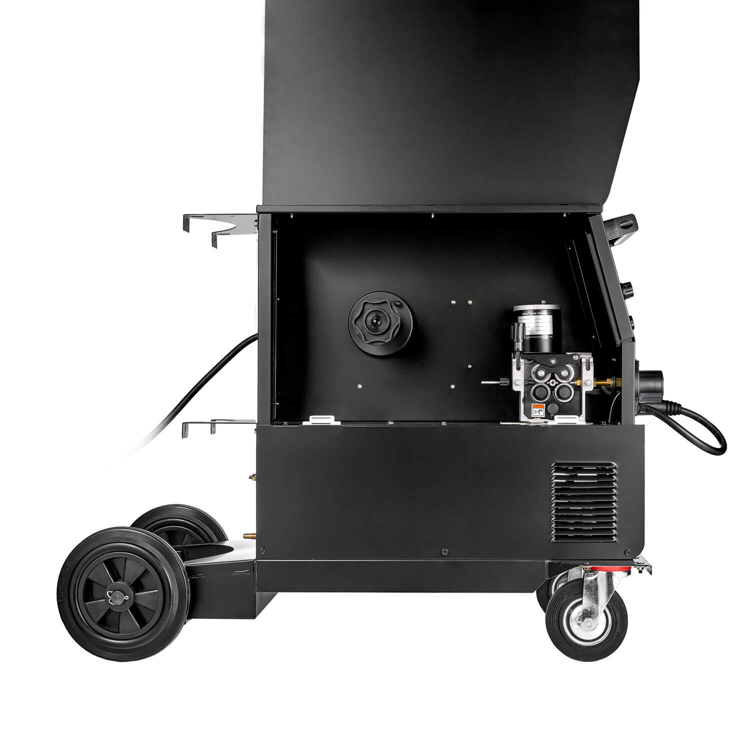 Модель оснащена внешним четырёхроликовым механизмом подачи проволоки, который обеспечивает стабильную и равномерную подачу без проскальзываний. Система управления проста и интуитивно понятна, а инверторная технология на IGBT-модулях обеспечивает надёжность, экономичность и стабильную сварочную дугу даже при длительной работе.