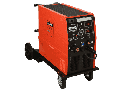 Выполнен на базе современных транзисторов IGBT по новейшей инверторной схеме. Эта технология обеспечивает максимально возможную мощность и долгую работу полуавтомата, и все это при малых габаритах. Сварог MIG2500 выполнен в монокорпусном модуле, есть встроенный двухроликовый подающий механизм. Сам аппарат помещен на тележке с вращающимися колесами, включает площадку для инсталляции стандартного баллона с газом.
