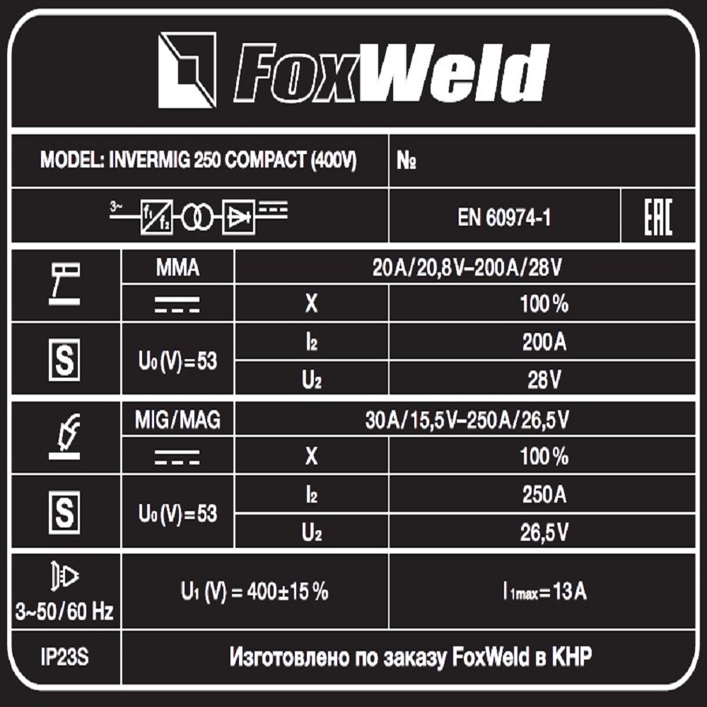 Сварочный аппарат FOXWELD Invermig 250 Compact (400V)