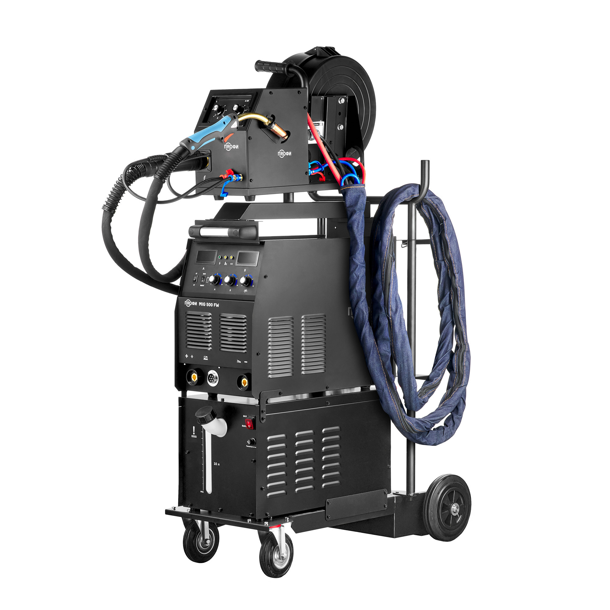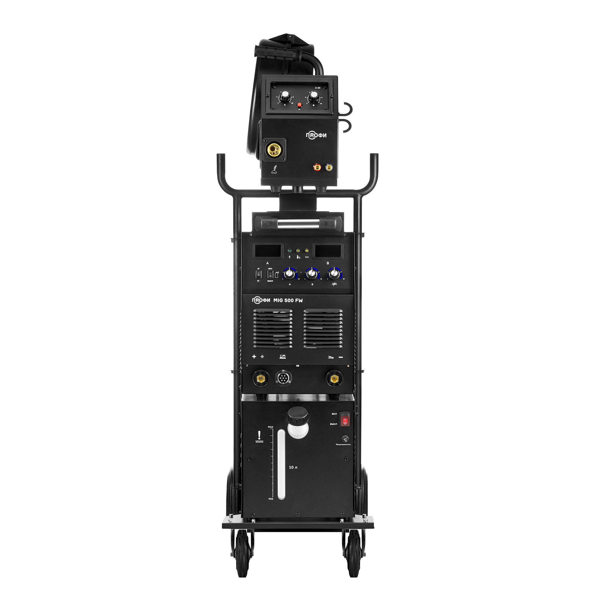 ПРОФИ MIG 500 FW — это высокомощный инверторный сварочный полуавтомат с водяным охлаждением, разработанный для профессионального применения в тяжёлых производственных условиях. Он поддерживает сварку в режимах MIG/MAG и MMA, обеспечивая стабильную дугу, качественный шов и высокую производительность при сварке конструкционной и нержавеющей стали.