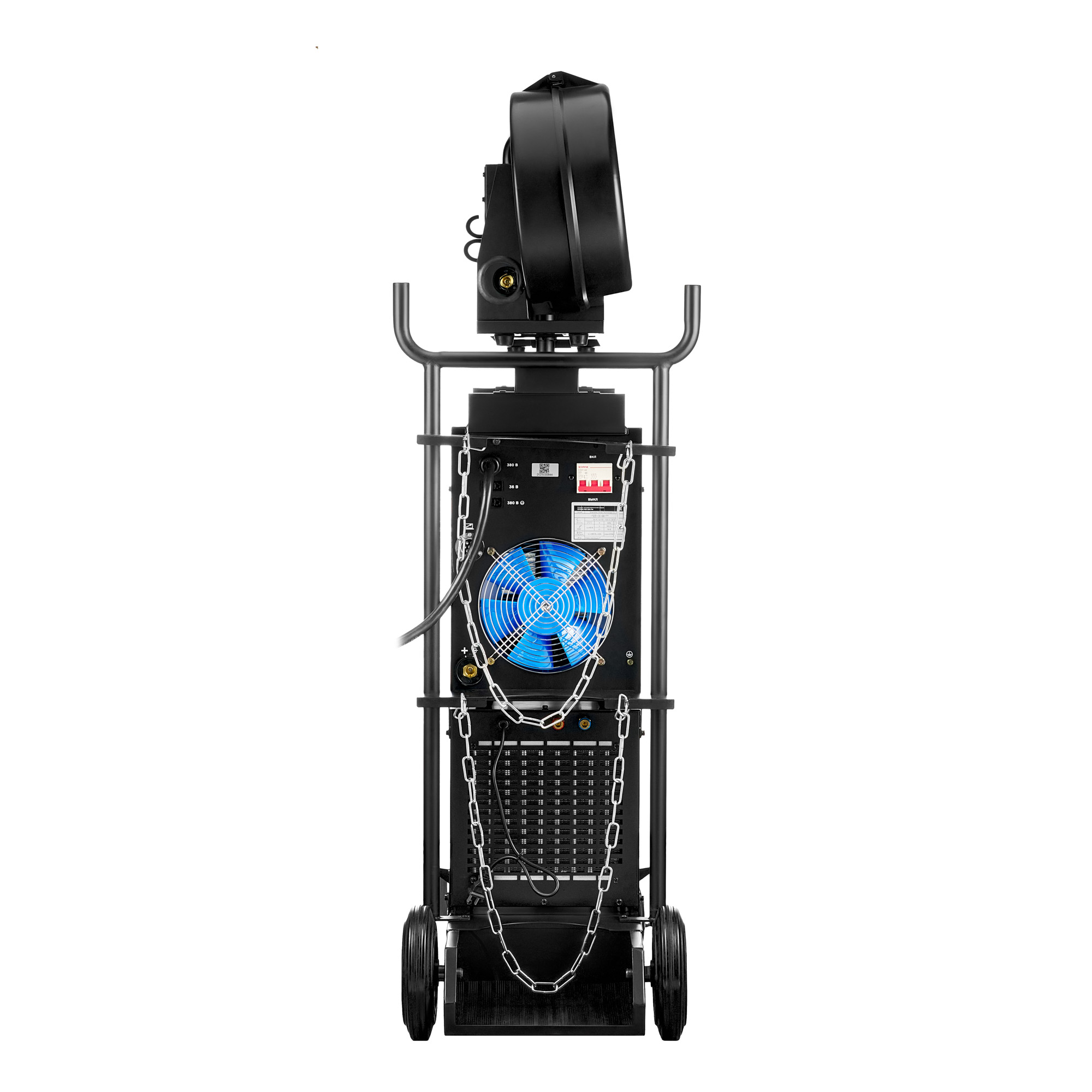 Аппарат работает от трёхфазной сети 380 В и развивает сварочный ток до 500 А. Внешний 4-роликовый механизм подачи проволоки и система жидкостного охлаждения обеспечивают длительную и бесперебойную работу даже при интенсивной нагрузке. Инверторная IGBT-технология гарантирует точное управление параметрами, энергоэффективность и защиту от перегрева.