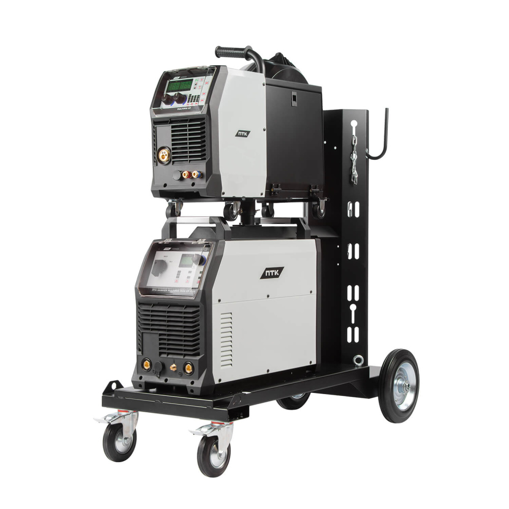 Аппарат сварки ПТК HANKER MULTIMIG 350S EP H22 обладает широкими возможностями и комплектацией. В комплект поставки входит сварочная горелка MIG 36, предназначенная для сварки как коротких, так и длинных швов. Дополнительно, можно подключить горелку Spool Gun, однако она приобретается отдельно. Также аппарат можно оснастить блоком жидкостного охлаждения ПТК HANKER, вместимость бака которого составляет 5,5 литра. Кнопка управления находится на передней панели источника. Это удобно и позволяет эффективно использовать аппарат для различных видов сварочных работ.Комплект аппарата включает тележку, подающий механизм и баллон с защитным газом. Тележка прочная, с 3-миллиметровым металлическим корпусом.