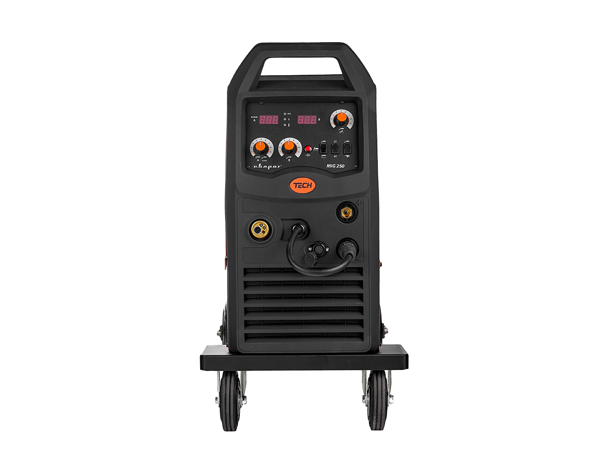 Благодаря применению инверторной технологии IGBT, TECH MIG 250 демонстрирует стабильную дугу, экономичный расход энергии и качественный шов даже на тонких металлах. Аппарат поддерживает полуавтоматическую сварку в среде углекислого газа и газовых смесей, а также электродами до Ø5 мм в режиме MMA.