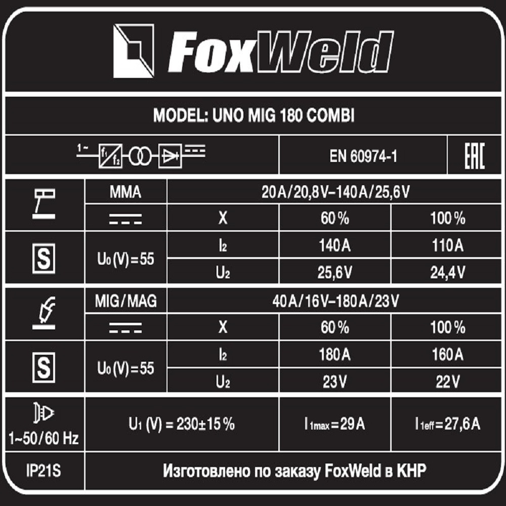 Сварочный полуавтомат FOXWELD UNO MIG 180 COMBI