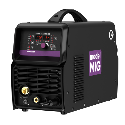START modelMIG 320 — это полуавтоматический сварочный аппарат профессионального уровня, созданный для выполнения объёмных и ответственных задач в условиях непрерывной эксплуатации.