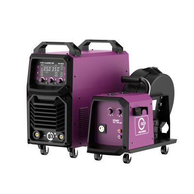 START modelMIG 350 — это высокопроизводительный инверторный сварочный полуавтомат MIG/MAG, предназначенный для интенсивной работы на производстве, в строительстве, на СТО и при монтаже металлоконструкций. Модель обеспечивает сварочный ток до 350 А, что позволяет уверенно варить толстостенные заготовки из конструкционной и нержавеющей стали.