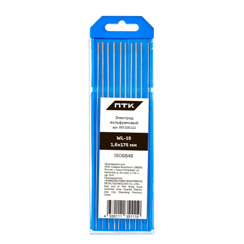 Электрод вольфрамовый ПТК WL-15 длиной 175 мм и диаметром 1,6 мм представляет собой высококачественный инструмент для сварочных работ, обеспечивающий надежность и долговечность в процессе эксплуатации. Изготовленный из чистого вольфрама, данный электрод идеально подходит для сварки в средах с инертными газами, таких как аргон.