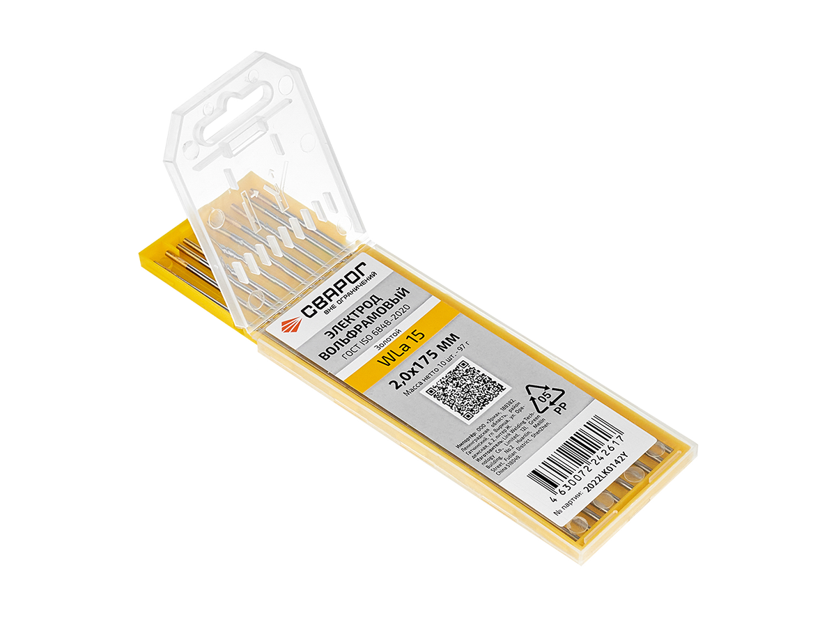 WL15 2,0 х 175 мм — выбор для тех, кто ищет сбалансированный TIG-электрод с надёжной дугой и долгим сроком службы.