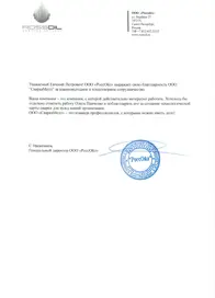 Благодарственное письмо от ООО «РоссОйл»