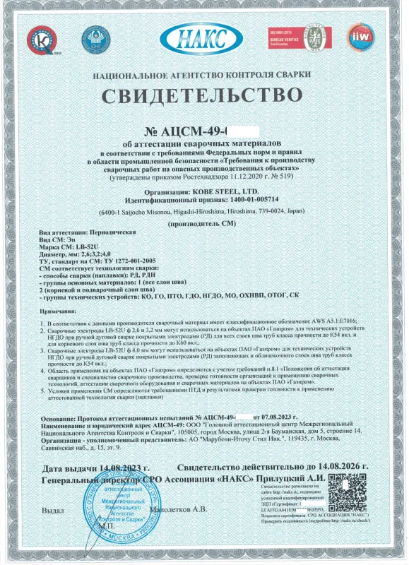 НАКС на сварочные электроды LB52U